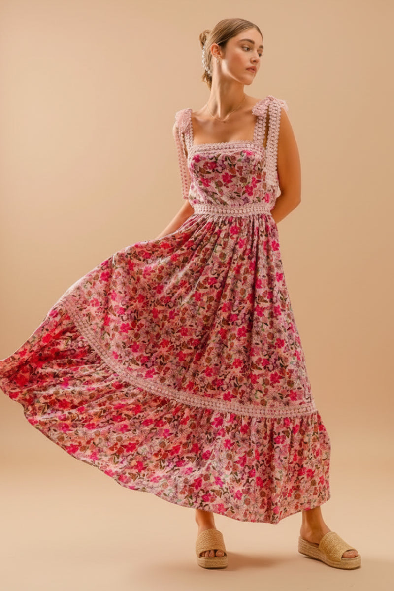 Mineral Washed Bow Ribbon Denim Flare Dress