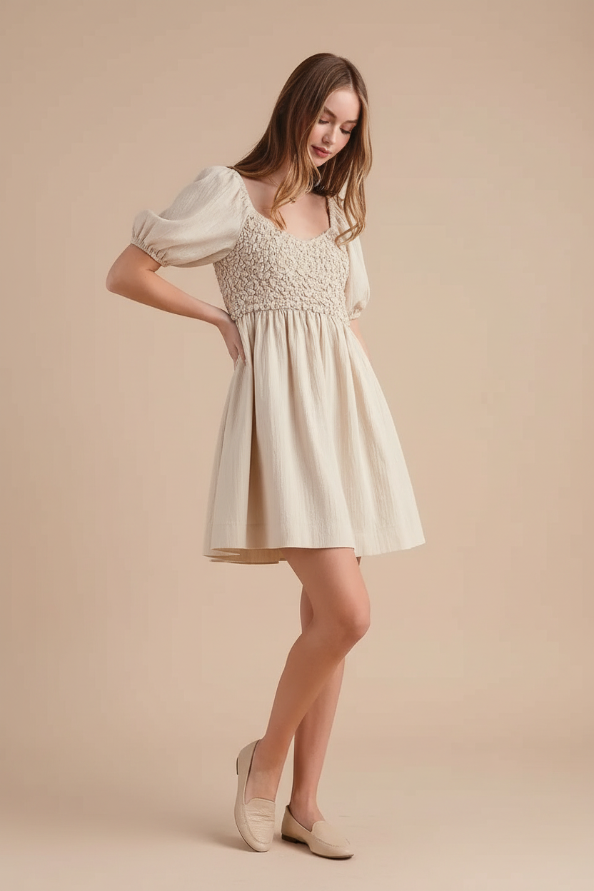 A Line Fit and Flare Diamond Bow Ribbon Denim Dress